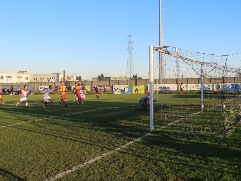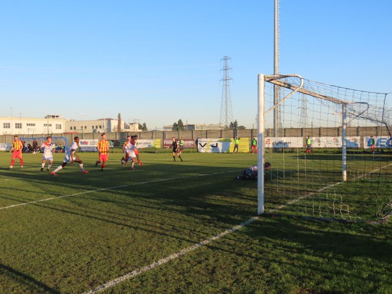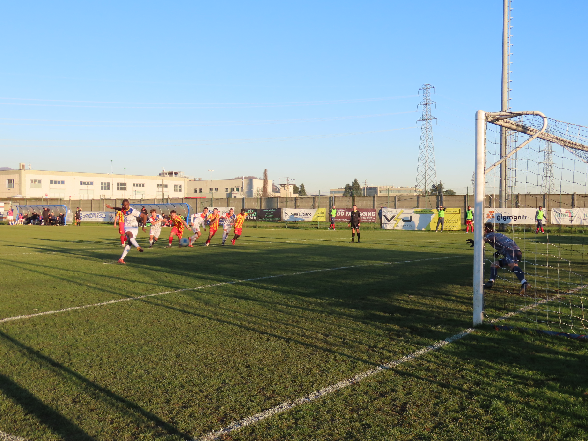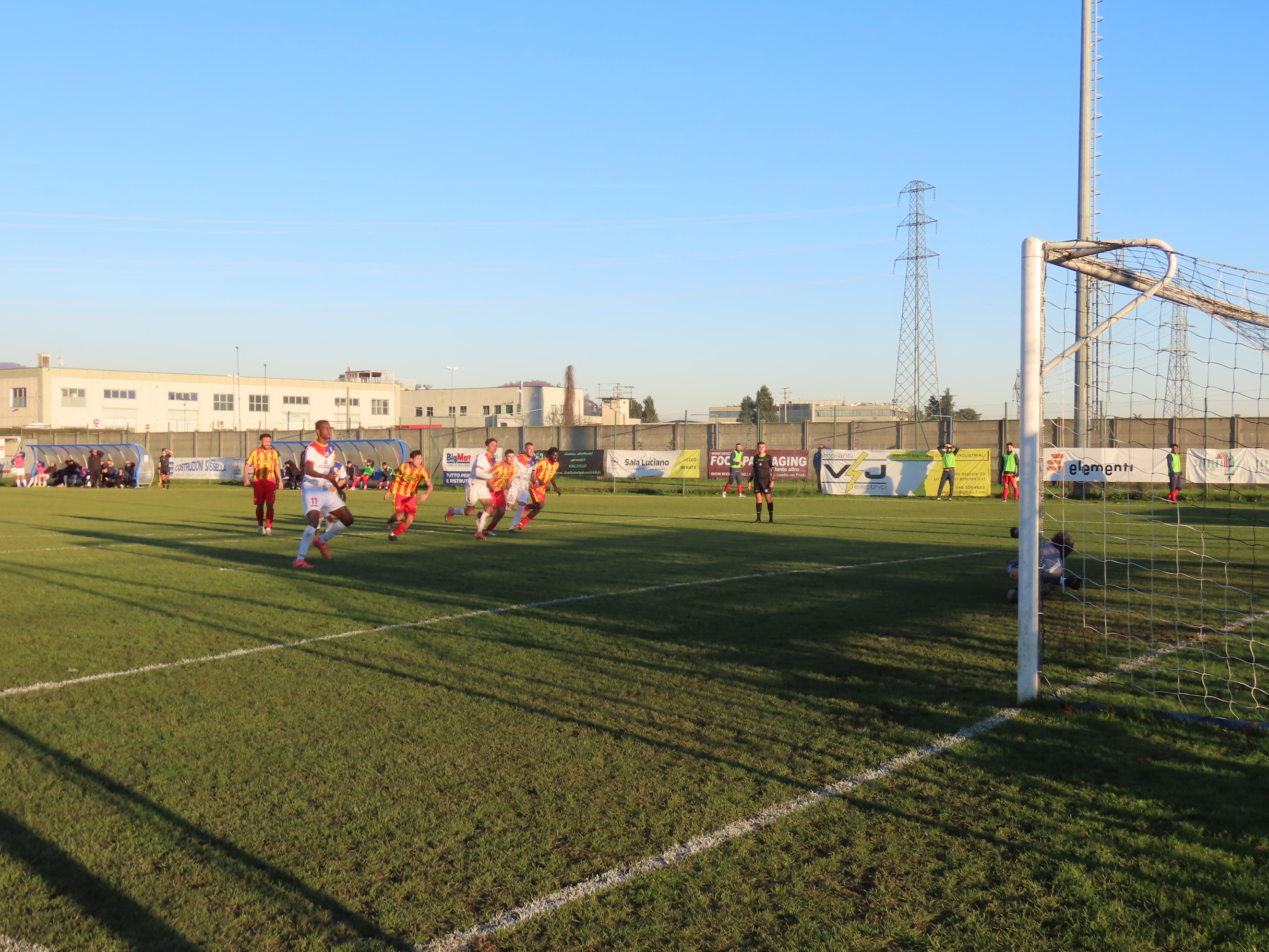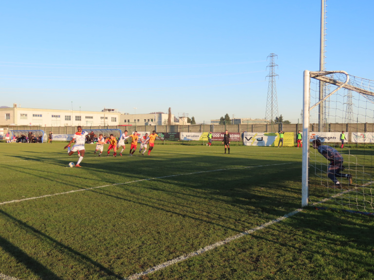Gli undici di Del Piano, ben messi in campo, attuano molto bene la trappola del fuorigioco, per poi aggredire tutte le seconde palle con un’ottima disposizione. Poche le emozioni durante la gara. Da segnalare il gol ospite arrivato proprio allo scadere del primo tempo, dopo un’ottima interdizione: l’azione, partita dai piedi di Belloli, è stata deviata in modo imparabile da Milani.