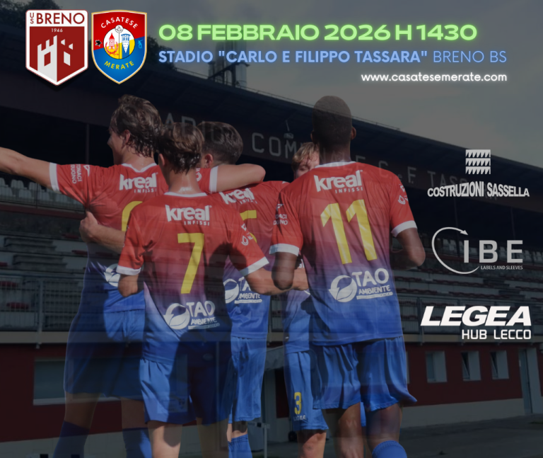 È tempo di voltare pagina e rimettersi in marcia. Domenica 8 febbraio, la Casatese Merate sale in Valcamonica per affrontare l’US Breno nella 23ª giornata del Campionato di Serie D (Girone B). Fischio d’inizio fissato per le ore 14:30.