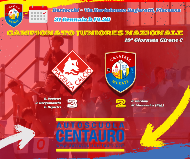 Juniores Nazionale: Una Casatese Merate da applausi sfiora l’impresa a Piacenza. Testa altissima contro la capolista.